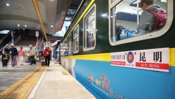 At around 11 p.m. on October 21, the China-Laos Railway's first inclusive international tourist train, numbered Y26/7, departed from Kunming Railway Sta...
