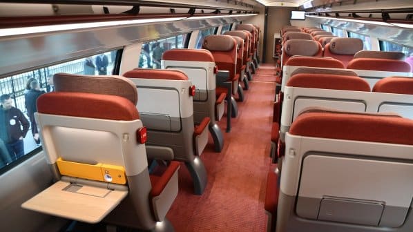 每列TGV M列車(chē)將能夠搭載近600名乘客,采用高密度座椅的TGV M列車(chē)單列最多可容納740名乘客。由于在安裝輔助蓄電池組方面遇到問(wèn)題,今年引入TGV M列車(chē)的計劃已經(jīng)推遲。該輔助蓄電池組能夠在接觸網(wǎng)故障時(shí),使列車(chē)以10公里/小時(shí)的速度繼續行駛至下一站,并保持照明和空調等輔助系統的運行。SNCF希望在2026年初投入使用時(shí)能夠擁有九列列車(chē)。