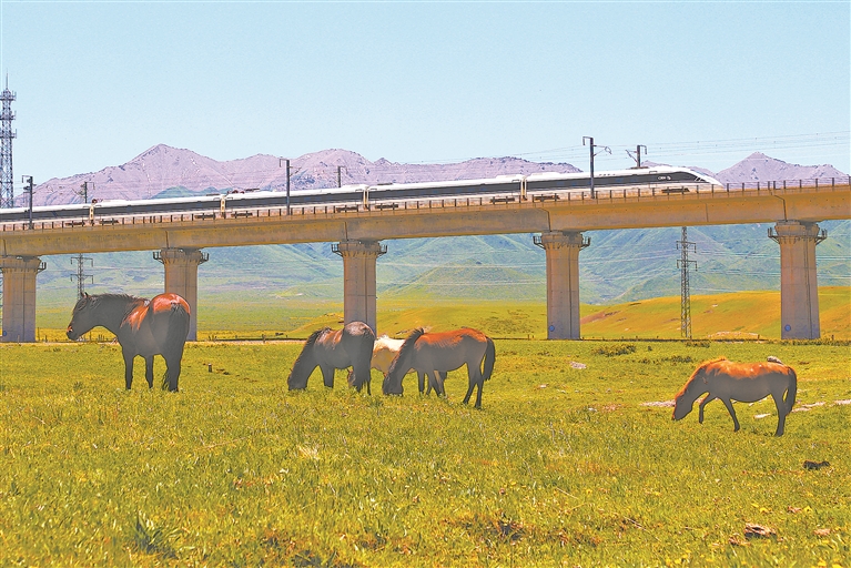 葉俊海攝影作品:列車(chē)穿越山丹馬場(chǎng)草場(chǎng)