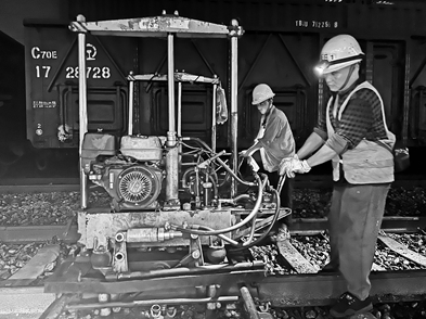 圖為贛州工務(wù)段作業(yè)人員操作液壓搗固機對軌道線(xiàn)路進(jìn)行養護。張博攝