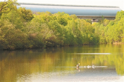 林間碧水畔,聲屏障靜立,秋沙鴨嬉戲。受訪(fǎng)單位供圖