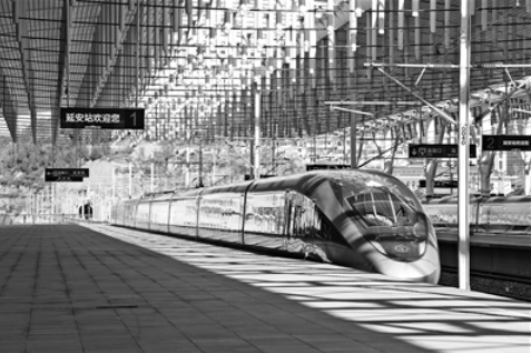 圖為試驗動(dòng)車(chē)組駛入延安站。張黎芝攝