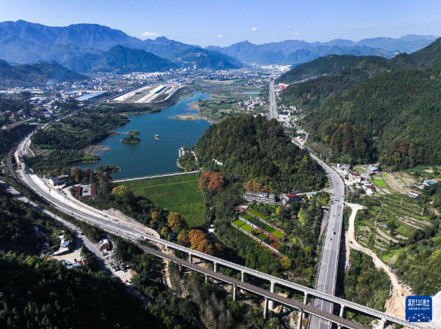這是貴州甕馬鐵路綠蔭湖1號橋。11月16日,由中鐵二十局承建的貴州甕馬鐵路南延伸線(xiàn)架梁鋪軌工程順利完工。新華社記者 楊文斌 攝
