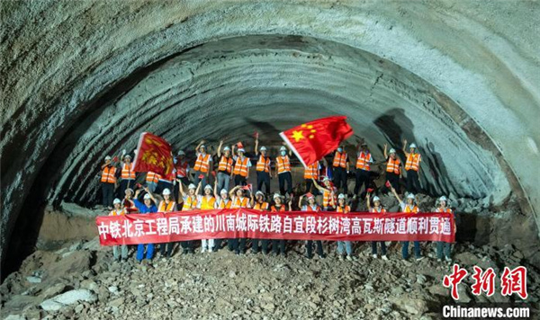 中新網(wǎng)富順10月4日電 (記者 劉忠俊)10月4日,四川自貢至宜賓高鐵控制性工程、全線(xiàn)唯一高瓦斯隧道杉樹(shù)灣隧道貫通,隧道貫通為全線(xiàn)建成通車(chē)奠定了堅實(shí)基礎。