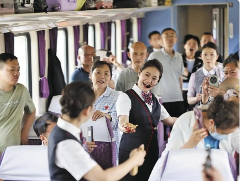 今年以來(lái),青藏集團公司依托鐵路沿線(xiàn)特色資源,開(kāi)行多趟主題旅游列車(chē)。其中,“大美青?!ば腋N鞑亍睂?zhuān)列已開(kāi)行8趟,服務(wù)游客2500余人次。此外,“六一”紅領(lǐng)巾專(zhuān)列、“研學(xué)專(zhuān)列”等特色列車(chē)也深受群眾歡迎,通過(guò)唱紅歌、非遺體驗等活動(dòng),讓旅客在旅途中接受文化熏陶。